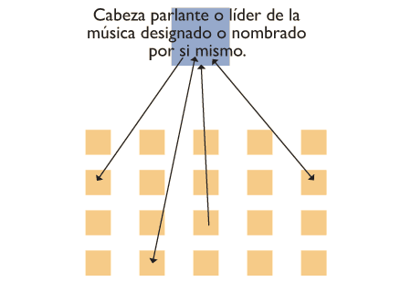 En el ejemplo abajo, típico modelo religioso de instituciones e “iglesias en casa”, hay un simple hombre que oficialmente “está a cargo” y todo necesita pasar por él. Él es quien oficialmente comienza, termina, enseña o “apunta” a alguien para enseñar o asumir la “alabanza”. Él toma las decisiones, responde las preguntas y tiene el control del “procedimiento”. Eso no existe en la Biblia (1Co 14:26) y está mucho más allá de producir Fruto. Fermento en la masa, Dones sofocados y la pérdida del Señorío de Jesús son inevitables en ese modelo. Otro detalle: ese “método” no se encuentra en la Biblia. Eso debería tener gran peso.