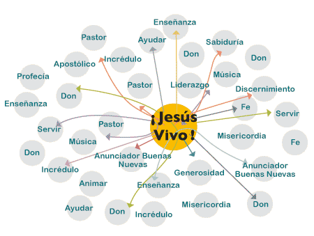 Pero, ¿y si todos los dones tuvieren un lugar igual? Talvez haya alguien con un don de pastor que esté sentado en el círculo. Talvez alguien con un don de enseñanza esté sentado aquí y un don de misericordia sentado allá. El don de ayuda talvez esté sentado aquí y alguien con el don de profecía podría estar sentado allí. ¡Todos los dones tienen un lugar igual porque son todos Jesús!